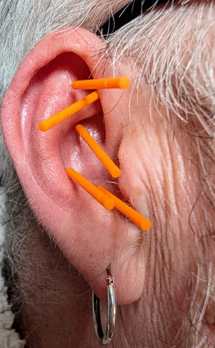 (National Acupuncture Detoxification Association) protocol, which is a specific form of Auricular (Ear) acupuncture, inserting up to five very small single use, disposable needles in points in the outer ear on each side. The Ear (like the Feet, Hands and Face) is a microsystem of the body which means that you can access the whole body by treating the ear. If you have seen Caz for Reflexology, you will know that this is what she talks about quite a lot!